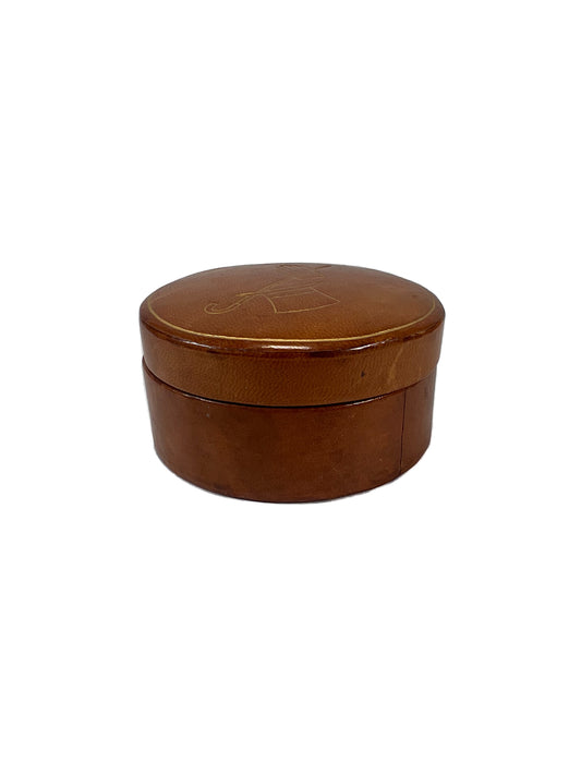 Vintage Jewelry Box - Genuine Leather - Embossed Gold Top Hat, Cane and Glove - Roos Bros California - Made In Italy
