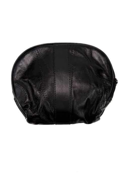 Vintage Makeup Bag - Black Patchwork Faux Leather - 1980s