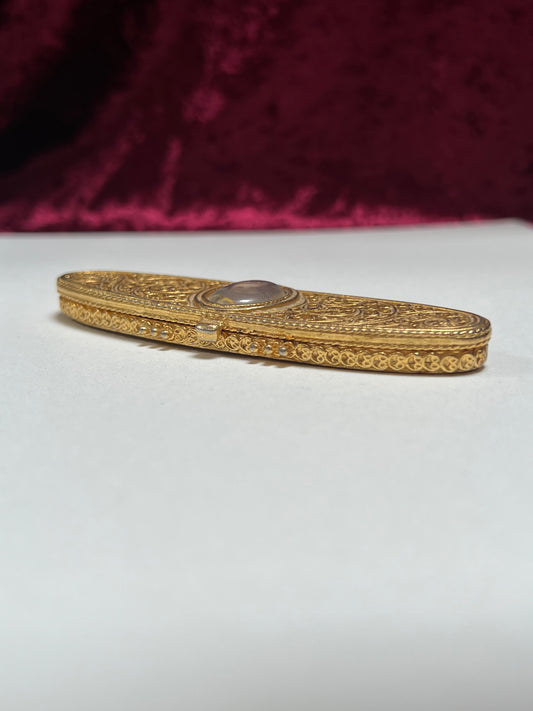 Vintage Trinket Box - Solid Parfum Compact - Portrait of a Lady - Gold Filigree Design - Estee Lauder