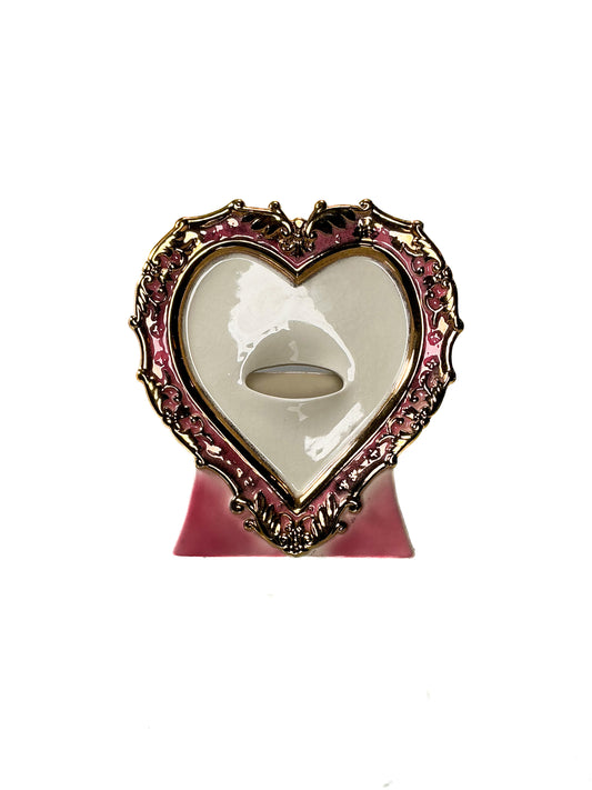Vintage Vase - Mid Century Pink Valentine Heart with Gold Filigree - Japan