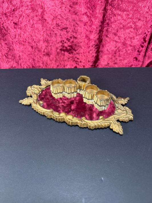 Vintage Vanity - Mirrored Lipstick Tray - Ornate Gold Frame - Made In Hong Kong