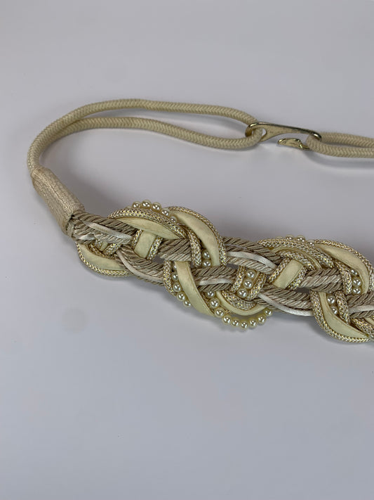 Vintage Waist Belt - Braided Cream Rope & Pearls