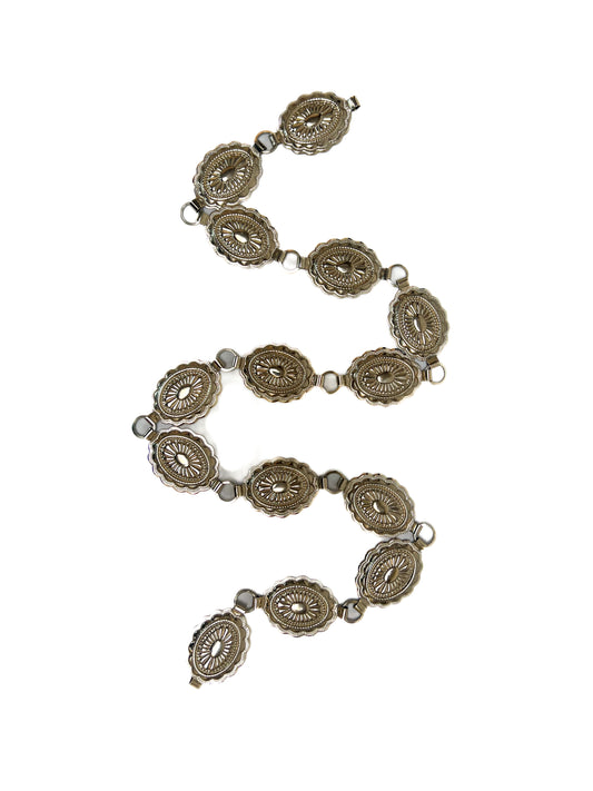 Vintage Waist Belt - Silver Metal - Stamped Concho Medallions - 36”