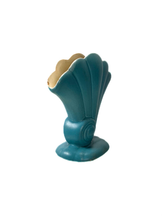 Vintage Vase - 1950s Baby Blue Ceramic Fan Shell Shape - Red Wing 899