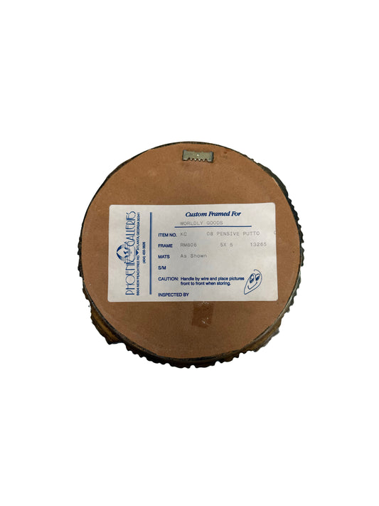 Vintage Wall Art - "Pensive Putto" - Print in Baroque Gilt Fresco Circle Frame - 5x5"