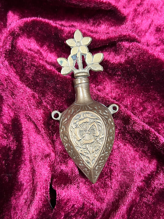 Vintage Vanity - Pocket Perfume Bottle with Screw Top Stopper - Brass - Ornate Floral Filigree