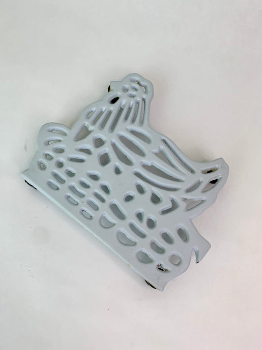 Vintage White Enamel Nesting Hen Trivet - 6"