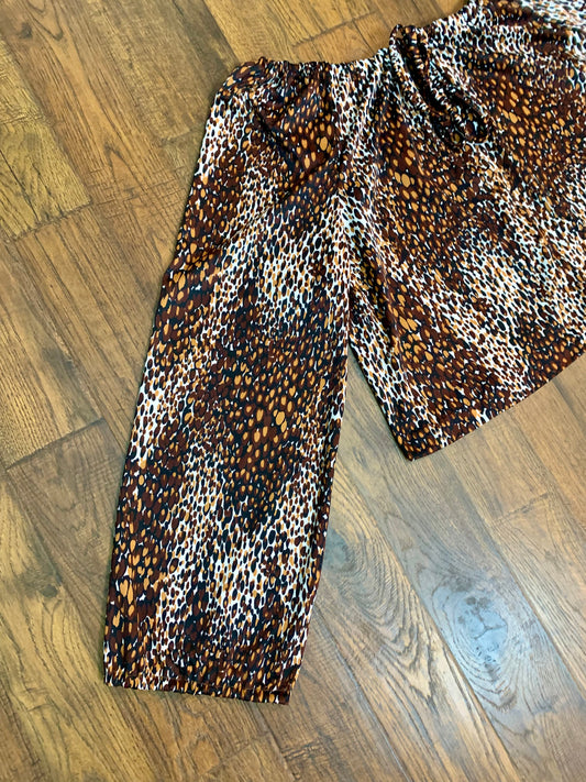 Retro 1970s Tomorrow's Dream Off Shoulder Bell Sleeve Blouse - Abstract Cheetah Print - Medium