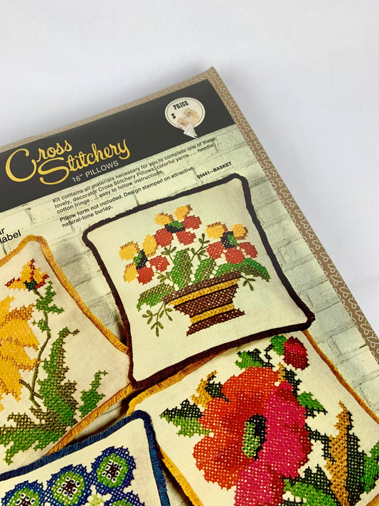 Retro Cross Stitchery 16" Pillow Needlecraft Kit - Basket of Flowers - NOS
