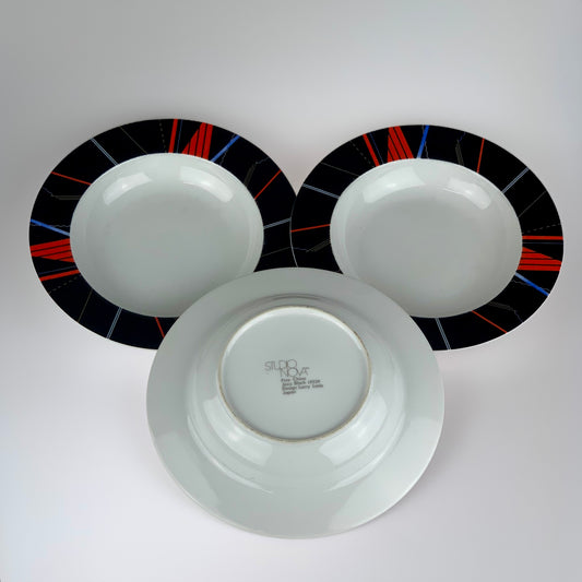 Set of 3 Studio Nova Jazz Black L9229 Rimmed Soup Bowls - by Larry Laslo