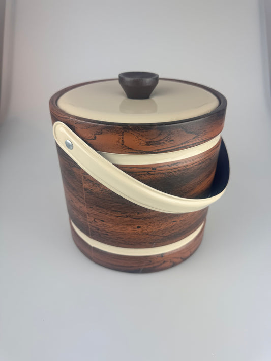 Vintage 1970s Retro Ice Bucket - Vinyl Wood Grain with Cream Colored Top