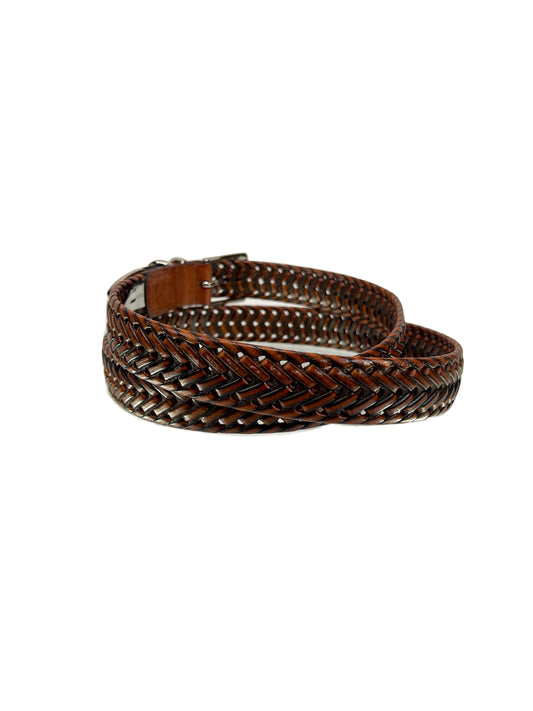 Vintage Accessories - Brown Braided Leather Belt - Silver Hardware - Perry Ellis Portfolio - 42