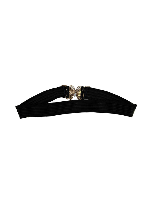 Vintage Accessories - Butterfly Clasp Elastic Waist Belt - Black - Made In Korea