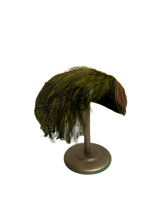 Vintage Accessories - Head Cover - 1950s Fascinator with Green Feathers - Sonni California