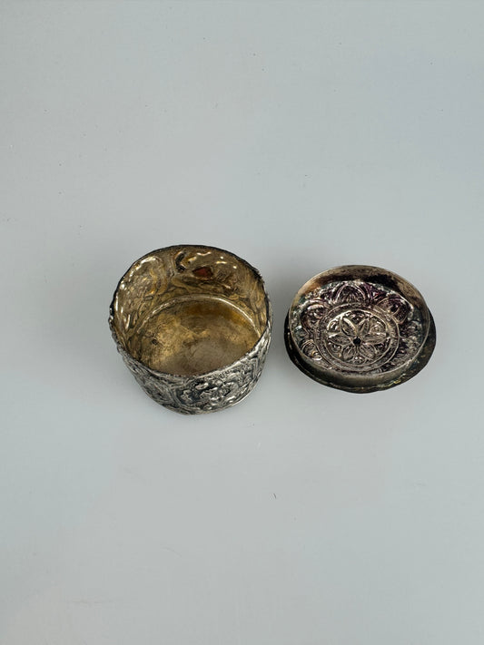 Antique Silver Repousse Pill Box with Floral Design - 19g