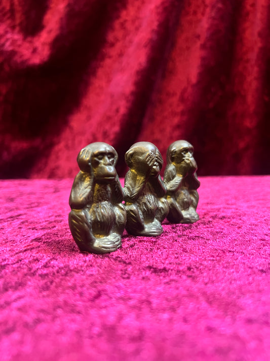 Vintage Brass Decor - Miniature Brass Statue - 3 Wise Monkeys