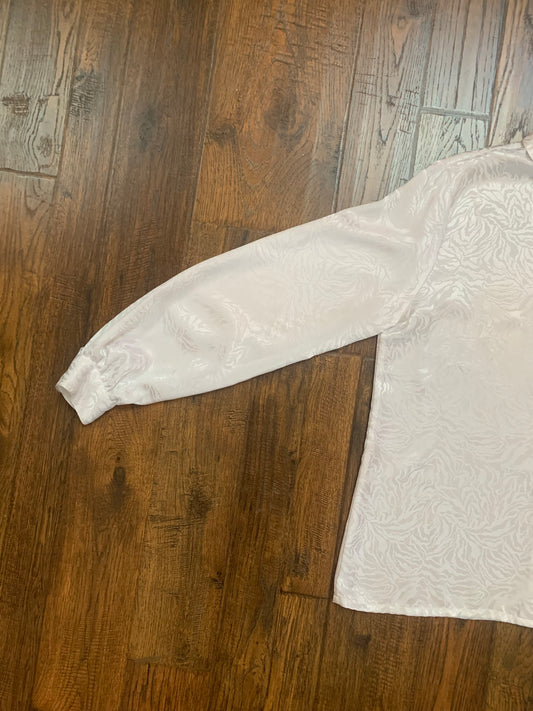 Vintage Clothing - Button Up Blouse - Silver & White Jacquard Tiger Stripes - Worthington - Medium