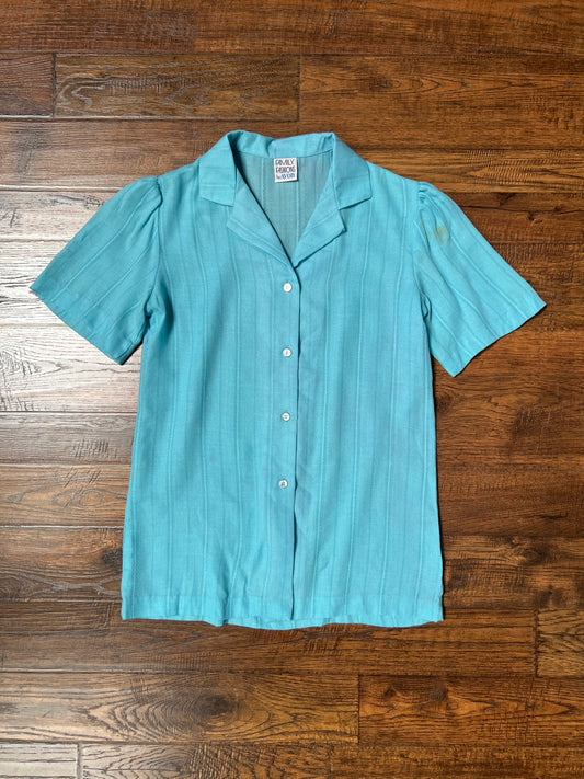 Vintage Clothing - Button Up Blouse - Princess Turquoise - Small - Family Fashions by Avon