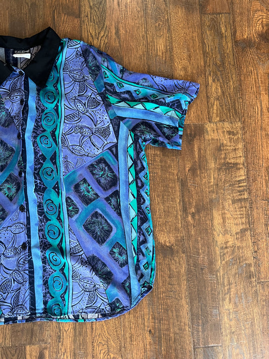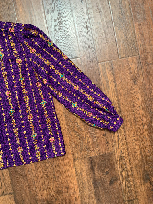 Vintage Clothing - Button-Up Blouse - Royal Purple - Painted Gold Chains - Diversity Petite - Medium