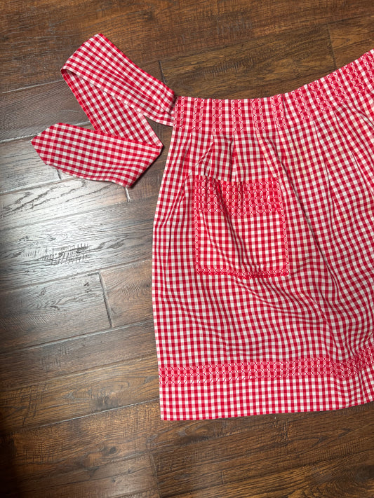 Vintage Clothing - Half Apron - Red Gingham with Cross Stitch Details