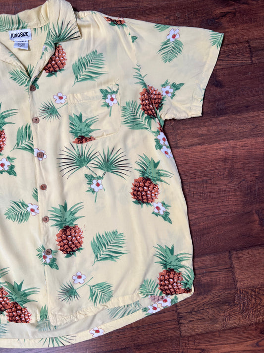 Vintage Clothing - Hawaiian Button Up Shirt - Pineapple Print - Yellow - King Size - 2XL