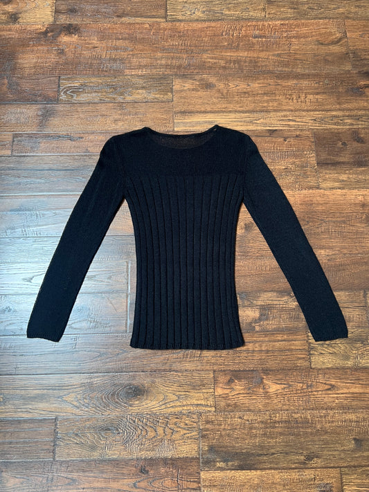 Vintage Clothing - Knit Long Sleeve Top - See Through Shoulders - Black - Small