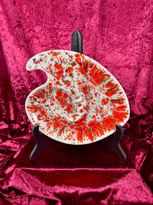 Vintage Ashtray - Sculptural Ceramic Drip Glaze - Mid Century Modern Orange - Large
