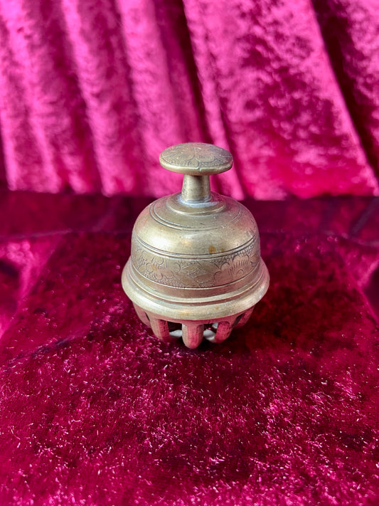 Vintage Brass Decor - Elephant Claw Hand Bell - Floral Pattern - China - 2.5"