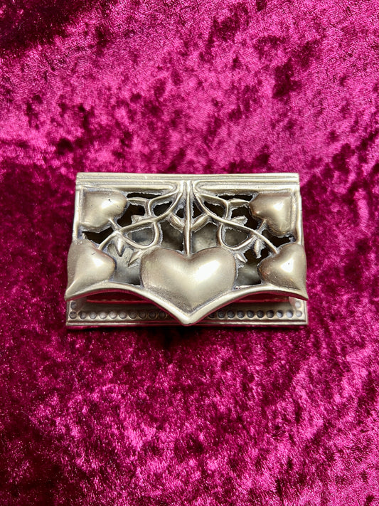 Vintage Brass Decor - Postage Stamp Holder - Art Nouveau Floral Hearts