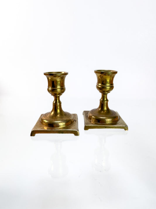 Vintage Brass Candlesticks - 3" Japanese - Pair of Two