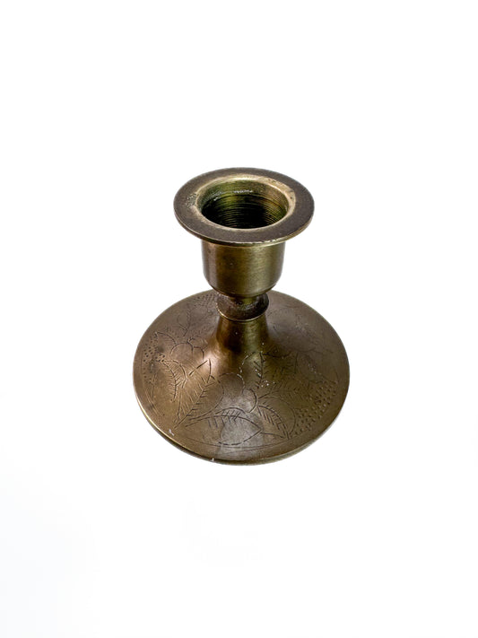 Vintage Brass Candlestick - Etched Floral 2.75" Tall - Single