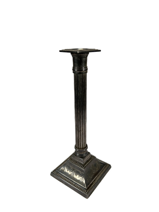 Vintage Silver-Plated Candlestick Holder - Neoclassical Corinthian Column - 11"