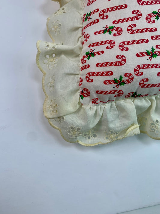 Vintage Christmas Decor - Quilted Patchwork Throw Pillow - Handmade