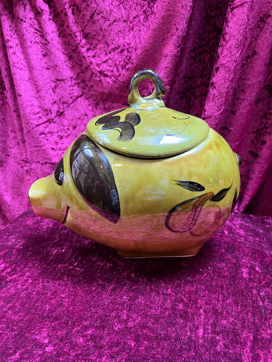 Vintage Kitchen - Ceramic Cookie Jar - Green Grinning Piggy - Los Angeles Pottery