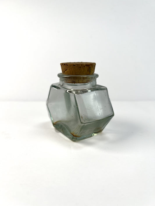 Vintage Miniature Glass Apothecary Bottle - Hexagon