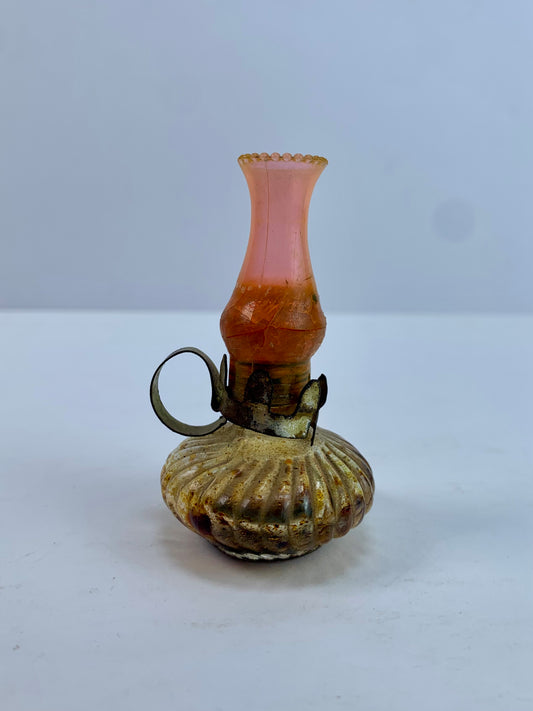 Vintage Perfume Bottle - Miniature Oil Lamp - Amber Glass - 2 1/2"