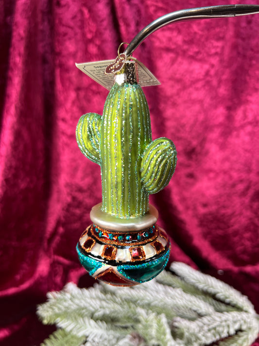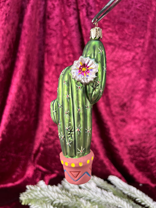 Vintage Christmas - Handblown Glass Ornament - Potted Cactus - Old World Christmas