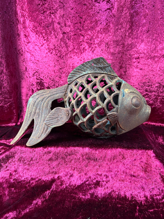Vintage Home Decor - Hanging / Tabletop Candle Lantern - Cast Iron Koi Fish