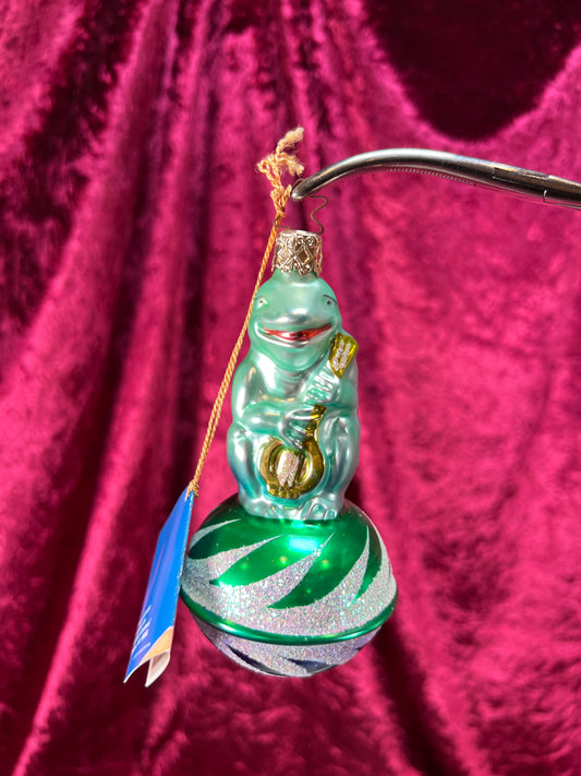 Vintage Christmas - Handblown Glass Ornament - Banjo Frog - Old World Christmas - 1993