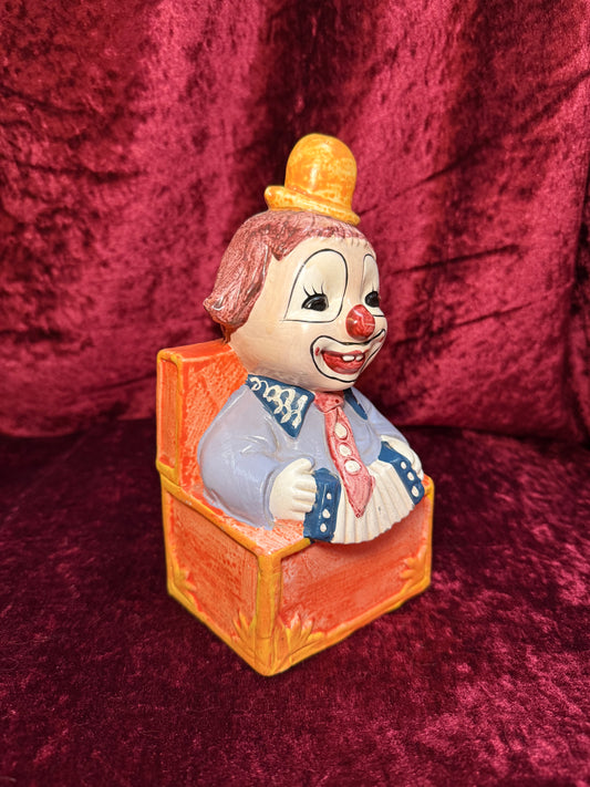 Vintage Clown Art - Whimsical Ceramic Figure - Jack in the Box Clown with Accordion Bank