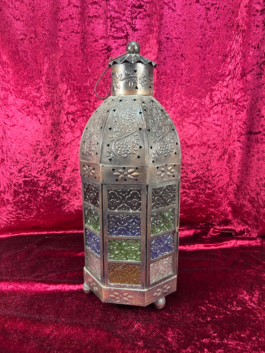 Vintage Home Decor - Hanging Moroccan Style Candle Lamp - Colorful Glass Panes - 18"