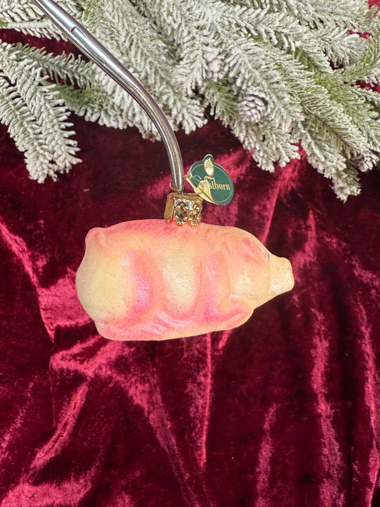 Vintage Christmas - Handblown Glass Ornament - Glitter Pig - Christborn - Germany