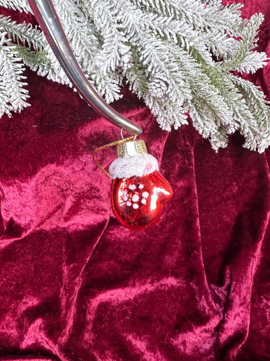 Vintage Christmas - Handblown Glass Ornament - Red Mitten