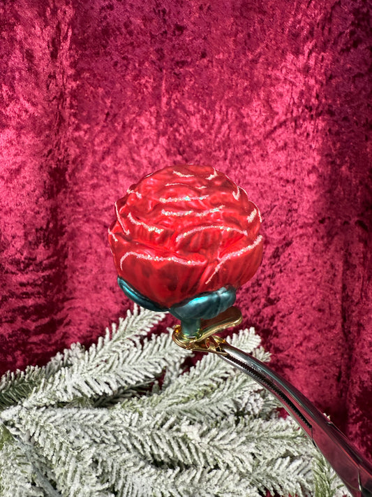 Vintage Christmas - Glass Clip-On Ornament - Red Desert Rose