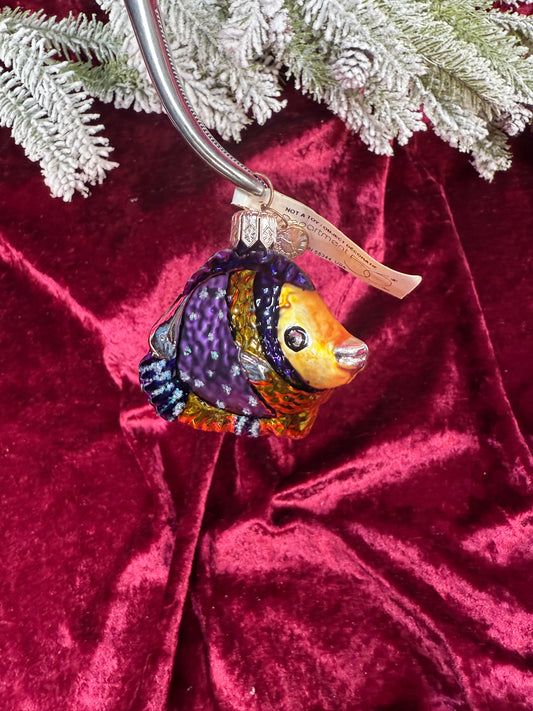 Vintage Christmas - Handblown Glass Ornament - Purple-Yellow Exotic Fish - Department 56