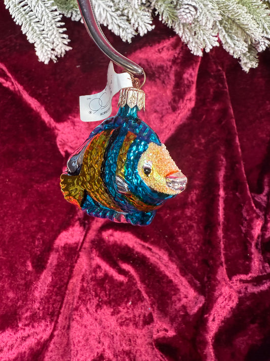 Vintage Christmas - Handblown Glass Ornament - Blue-Yellow Exotic Fish - Department 56