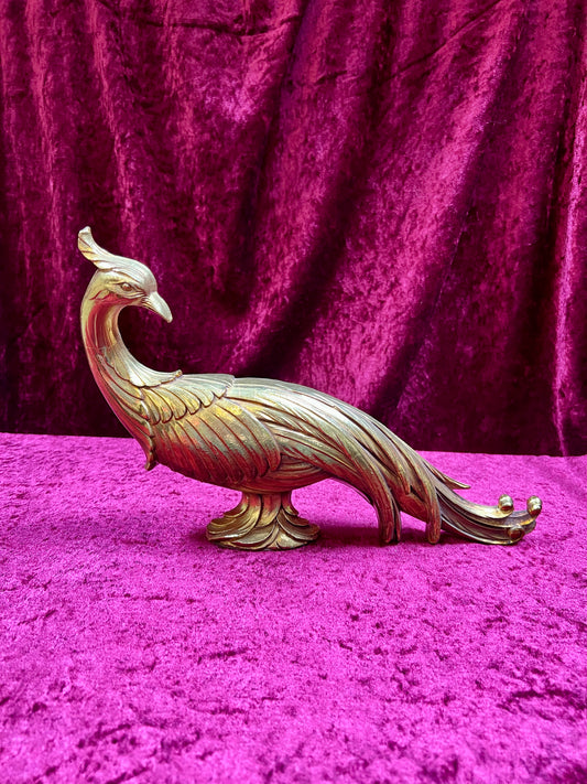 Vintage Home Decor - Pair of Mid Century Peacock Statues - Gold - Syroco