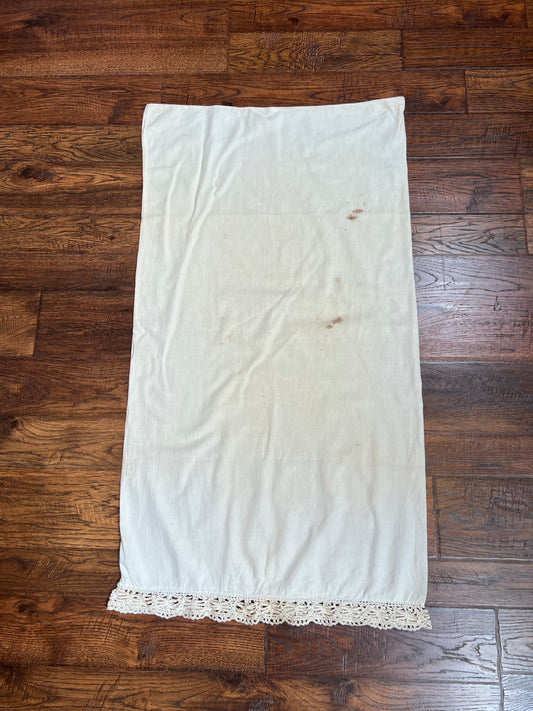 Vintage Linens - Pair of Lace Trim Pillowcases - Off White