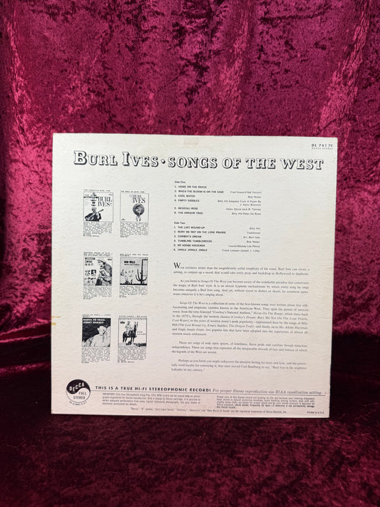 Vintage 12" Vinyl Record - Burl Ives - Songs Of The West - Decca Records