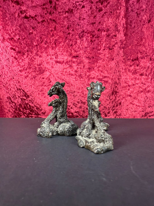 Vintage Trinket - Pewter Egg Stand - Giraffe Family